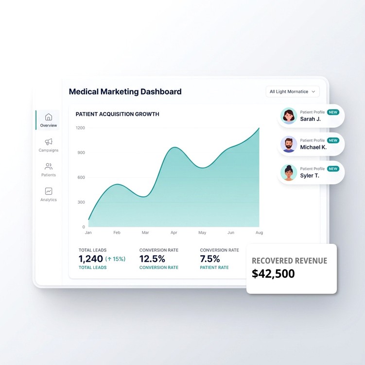 Not ecommerce. Not SaaS. Not restaurants. Just healthcare. This focus means we understand treatment cycles, patient psychology, compliance requirements, and what actually drives appointments.